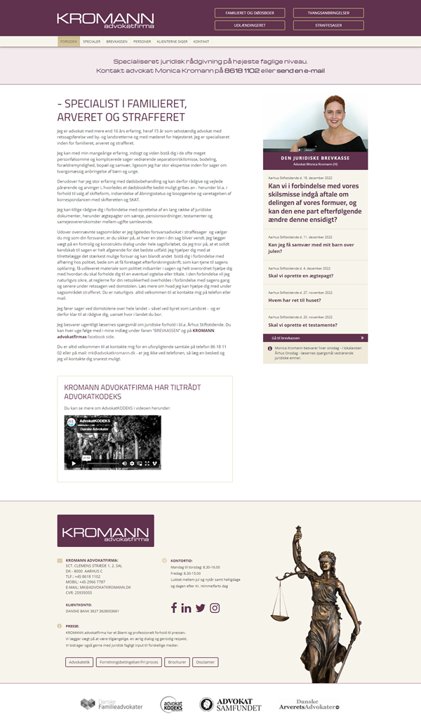 Hjemmeside lavet i Umbraco CMS for KROMANN advokatfirma