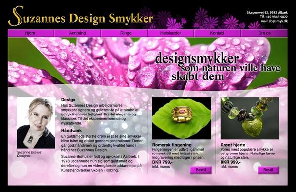 Projekt på Webintegrator grundforløbet på Aarhus Tech. Design forsiden til en hjemmeside for den fiktive smykkedesigner Suzannes smykker